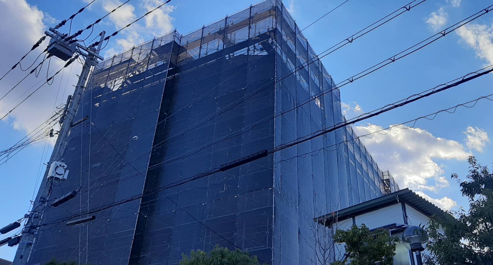 新築 改修 大規模建造物工事従来のビケ足場の利点に加えて、平坦で作業がしやすい作業床を提供してくれます。また、作業や運搬の効率が高い上に、施工時の騒音も低減可能です。さらに安全面でも優秀な選択肢であることが知られています。緊結の具合を目で見て判断できるため、従来の足場より打ち込み回数が減少します。これによって作業時の騒音が大きく減り、周辺環境への負荷を低減することに貢献します。